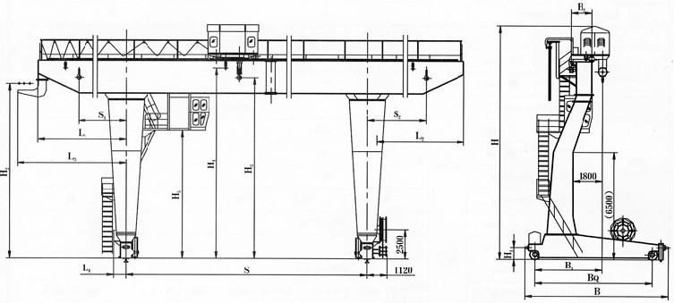 門式起重機由橋梁、大車運行機構、小車、電氣設備組成。橋架采用箱形焊接結構,大車運行機構采用分別驅動。全部機構均在操縱室內操縱。門式起重機導電形式分為電纜和滑觸線兩種,訂貨時任選一種。選用本起重機時須填寫訂貨規范表,須注明使用時工作環境的*低溫度和*高溫度以及電源等。地鐵施工中吊管片用的較多,