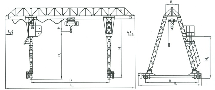 MH型3~10噸電動葫蘆門式起重機(全花架式)